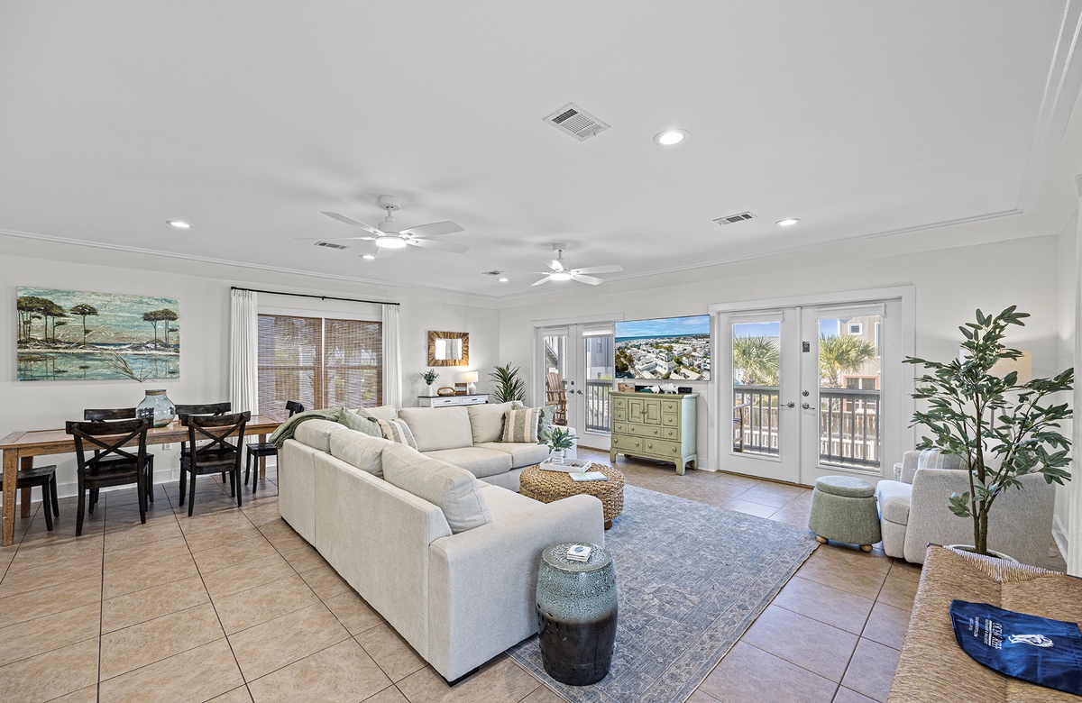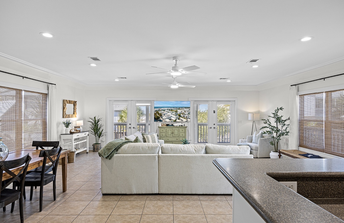 - Spacious living room with 55" TV, DVD