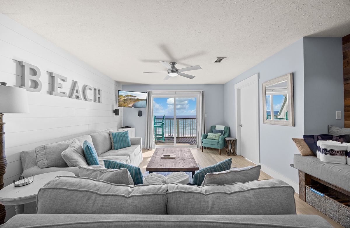Enjoy the unbelievable views and gulf-front breeze in this coastal-style condo located in Blue Mountain Beach. Sunseekers 4 is a two bedroom, two bath that sleeps 6 with 1 king, 2 full beds, 1 full daybed, and a queen sleeper sofa. The Sunseekers complex is comprised of only ten units, with a unique family feel located on the most beautiful span of beach in the world.