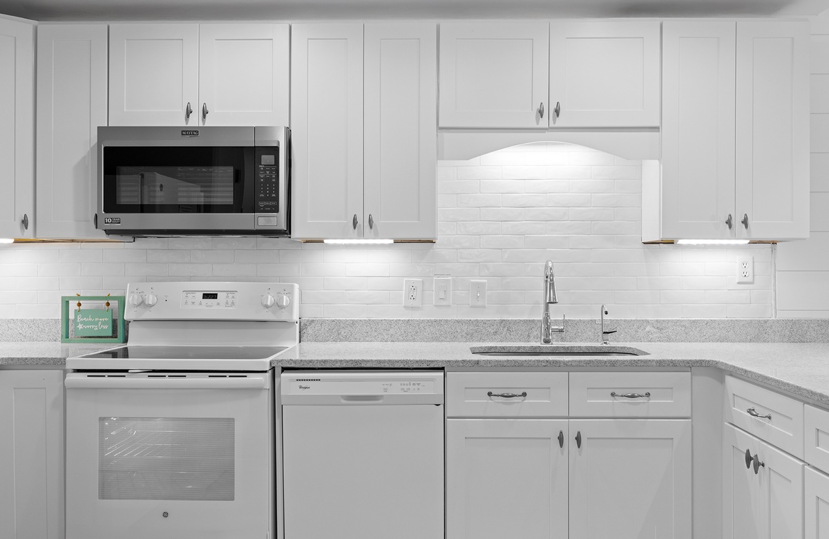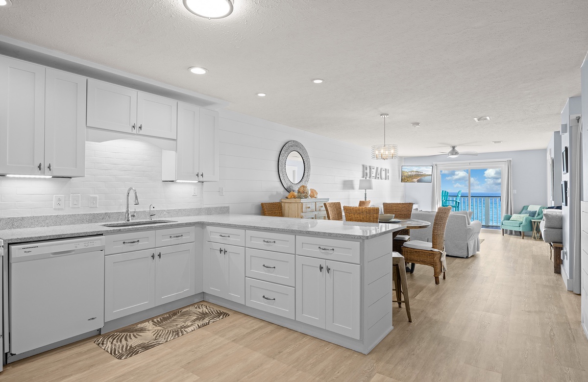Sunseekers 4 is a 2nd level condo (no elevator) with beautiful gulf views and private, direct beach access. Recently renovated, the condo has a great beachy feel inside with a calming color palate and new, comfortable furniture as well. The living room has plenty of room for seating, a flat screen TV and doors that open to the balcony facing the gulf. The master bedroom faces the Gulf of Mexico so you can lie in bed and see and hear the water lapping on the shore. The second bedroom has an additional two full beds and another private bath.