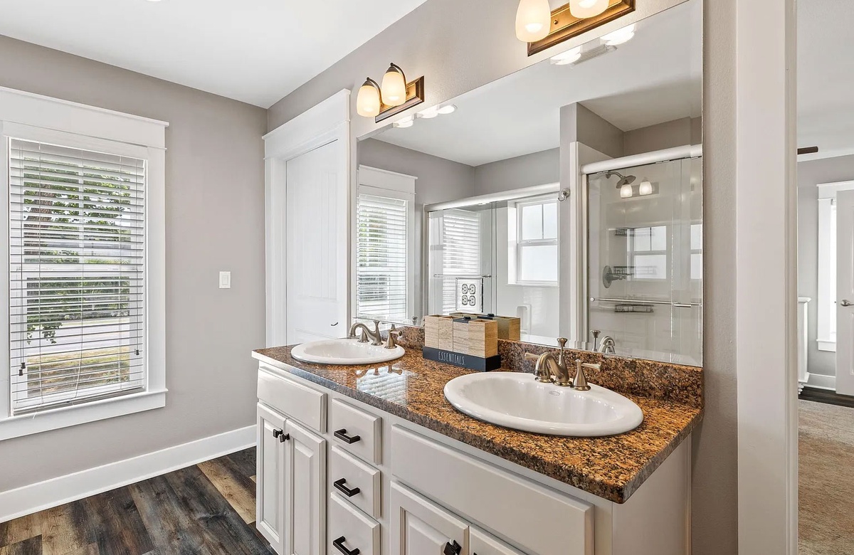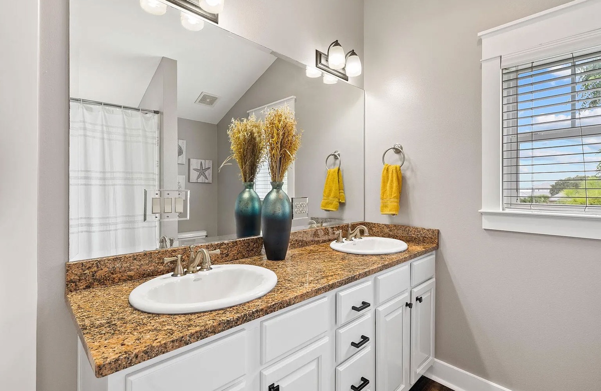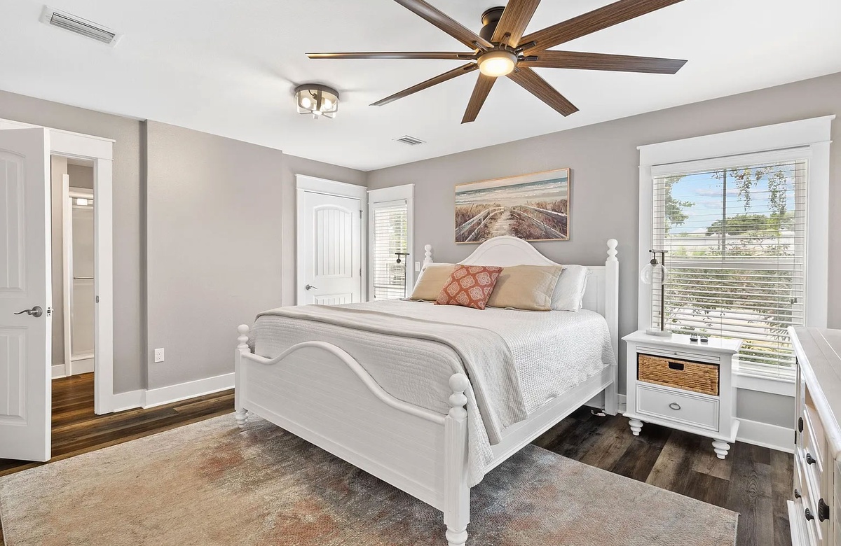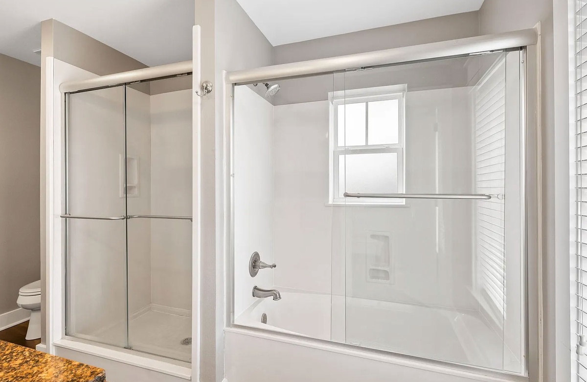 First Floor: King Primary Bedroom with Walk-In Shower and Tub/Shower Combo.