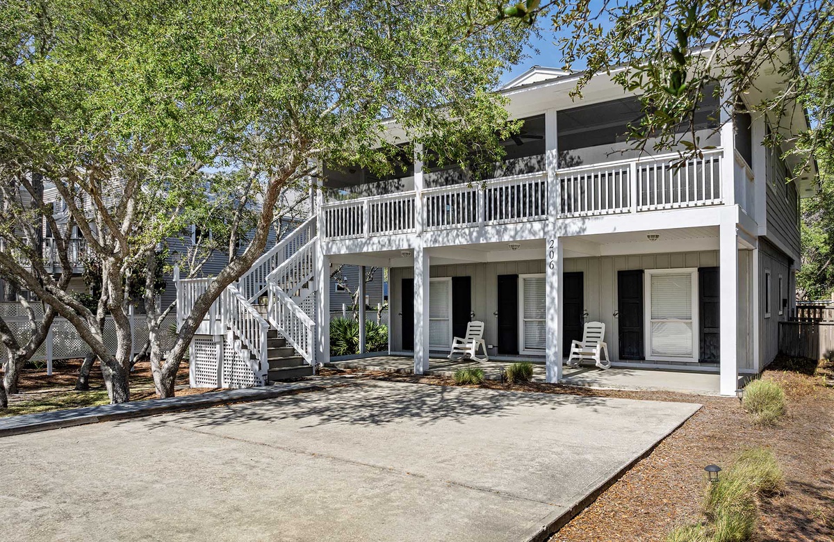Wahoo is a classic Grayton Beach property, located in the quiet community of Gulf Trace. Only ¼ mile west from the heart of Grayton, the home offers casual comfort for family gatherings. This 5 bedroom, 3 bath home sleeps 11 guests, with 1 king bedroom, 1 double twin bedroom and queen sofa sleeper in the living room upstairs, and 1 twin, 1 double twin, and a queen bedroom downstairs.