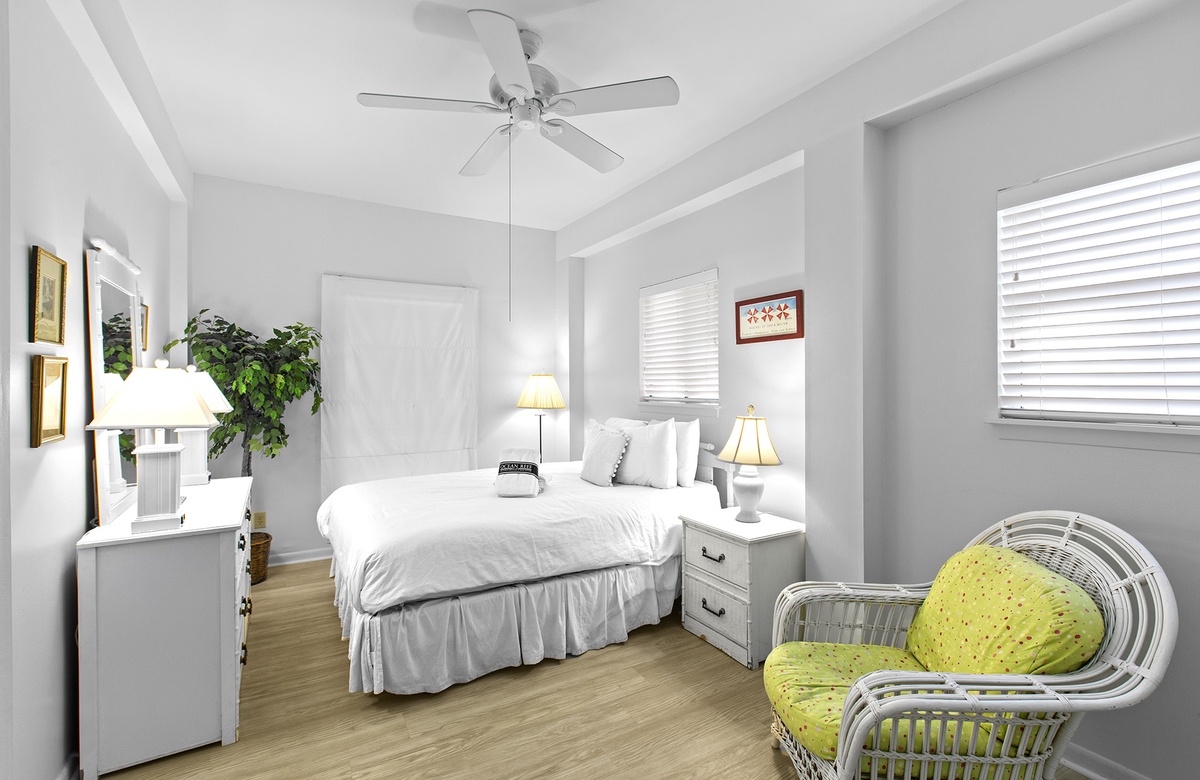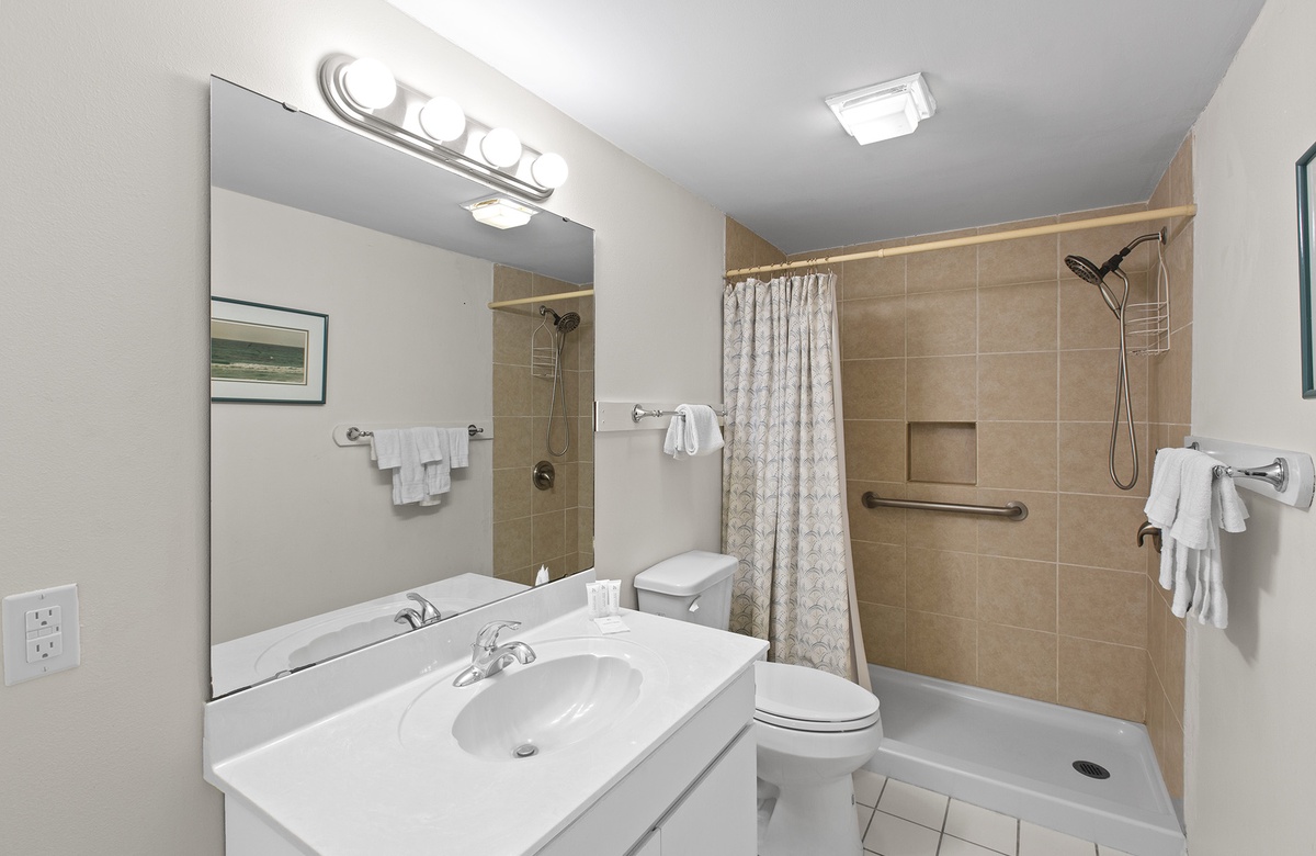 - King bedroom with hall bathroom (shower/tub combination)