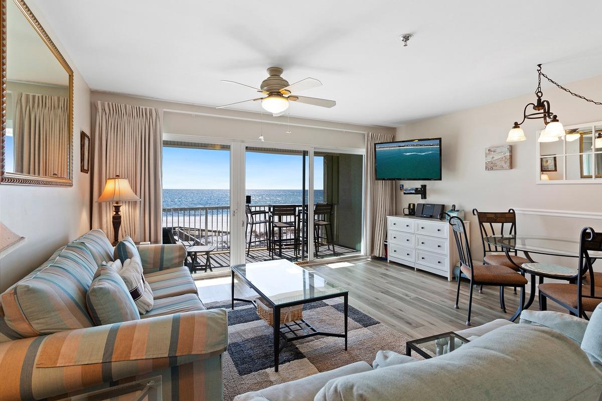 Commodore’s Retreat 204 is a cozy monthly winter rental along Scenic 30A, delivering Gulf-front views, low-density privacy, and an easygoing pace ideal for snowbirds or extended coastal stays. Located in east Seagrove Beach, this beachfront condo sits just above the dunes with a breezy private balcony overlooking the emerald Gulf, where winter sunsets steal the show and the sound of the surf becomes part of daily life. The open living area and flexible sleeping options make it easy to settle in comfortably for longer stays, while direct beach access and a Gulf-front pool offer the rare luxury of choosing between poolside afternoons or peaceful shoreline walks. Though the setting feels tucked away, Seagrove Beach and Seaside are just minutes away, with seasonal monthly winter rates adding excellent value to this classic Gulf-front escape.