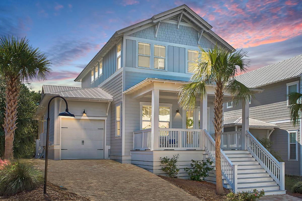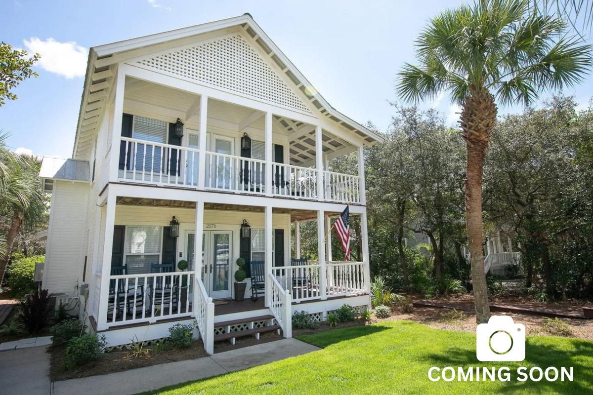 Deja Blue delivers the fresh, polished feel many families and couples look for when booking a spring break escape along 30A. Located in the desirable Highland Parks community, this four-bedroom home comfortably accommodates up to nine guests and blends classic Americana curb appeal with bright, modern interiors designed for gathering. The wide front porch sets the tone for slow mornings and relaxed evenings, while inside, soaring ceilings and a wall of windows fill the open living space with natural light. A crisp white kitchen with granite countertops, subway tile backsplash, and stainless steel appliances anchors the heart of the home, flowing seamlessly into a welcoming dining area and screened porch complete with outdoor seating and a TV for game-day afternoons. The first-floor Primary Suite offers convenience and privacy with a king bed and walk-in shower, while upstairs bedrooms—including an additional king suite, a queen guest room, and a fun bunk room—provide flexible space for families traveling together. Just a short bike ride or stroll from the beach and steps from the resort-style lagoon pool with hot tub and waterfall feature, Deja Blue offers that ideal balance of community amenities, coastal comfort, and easygoing style for a spring break that feels both elevated and effortless.