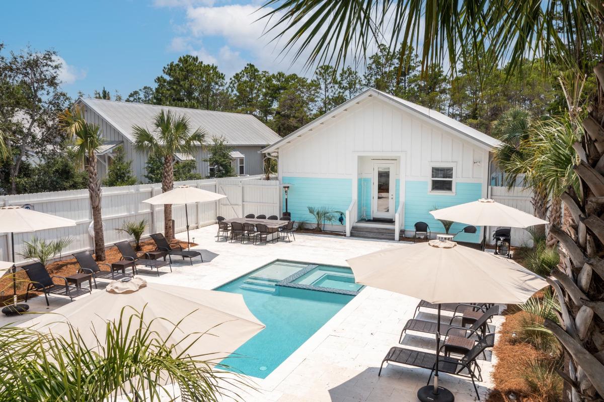 Celebrate the holidays in pure coastal comfort at Backyard Bliss, a charming Grayton vacation home that blends nostalgic charm with modern warmth. Perfect for a family Christmas by the coast, this single-level retreat features a heated private pool and hot tub surrounded by palms, lounge chairs, and a festive outdoor dining area—pool heat included at no extra charge! Inside, bright open living spaces, a stylish kitchen, and inviting bedrooms create a relaxed, home-away-from-home atmosphere. From this walkable spot, you’re just steps from local favorites like Black Bear Bread Co. and Hurricane Oyster Bar, and all of Grayton is easy to explore by bike when you’re ready to venture farther. At Backyard Bliss, it’s easy to trade snowflakes for sunshine and celebrate the season in true Grayton style.
