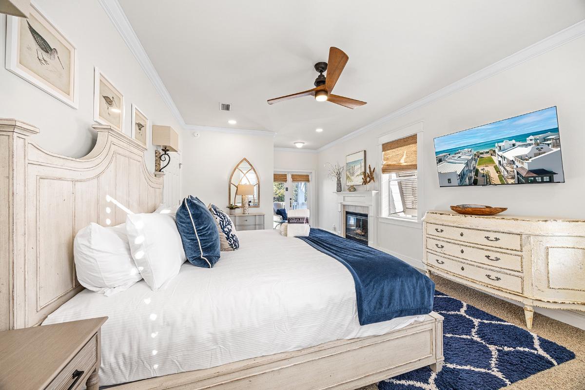 Tucked into the heart of Seagrove Beach along iconic Scenic 30A, this three-bedroom coastal cottage is the kind of place you book once and then immediately check the calendar for next year. It’s bright, calm, and thoughtfully styled without trying too hard—navy accents, crisp shiplap walls, and natural textures that feel equal parts polished and relaxed. The open first floor is made for togetherness, whether that’s morning coffee at the kitchen island, lingering dinners around the oversized dining table, or a low-key movie night on the sofa after a long beach day.