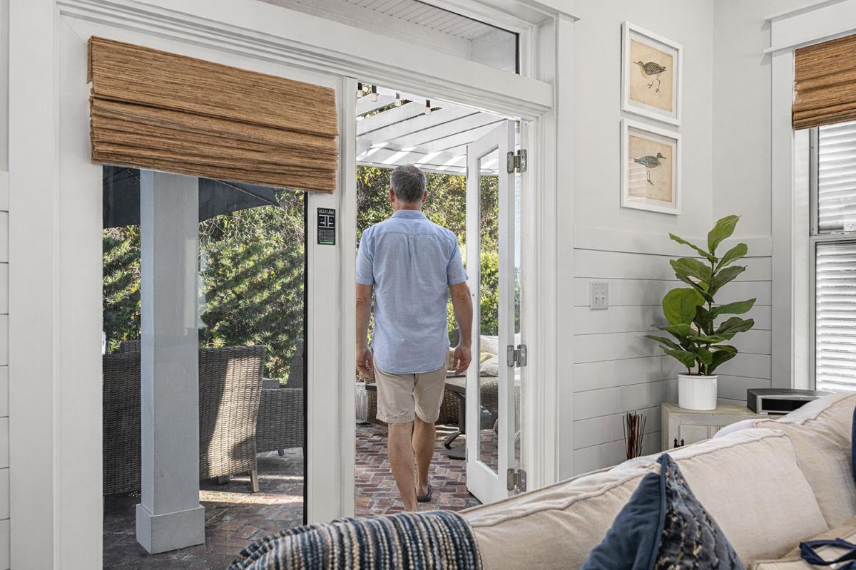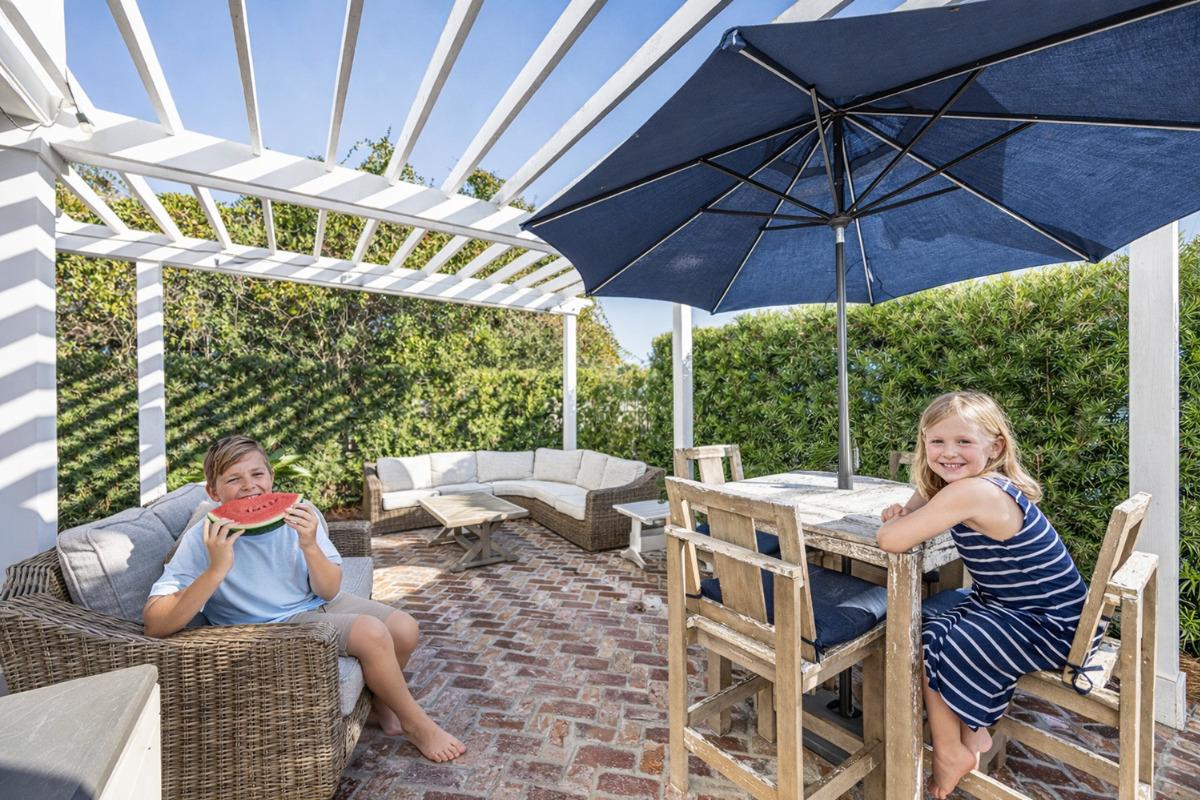 One of the best surprises here is the outdoor living. The patio is shaded by a white pergola and set up for actual hanging out—cushioned seating, alfresco dining, and a grill ready for easy dinners that just hit better outside. Between that, the community pool a short stroll away, and the front porch that catches the breeze just right, Sunny Seagrove strikes a near-perfect indoor-outdoor balance.